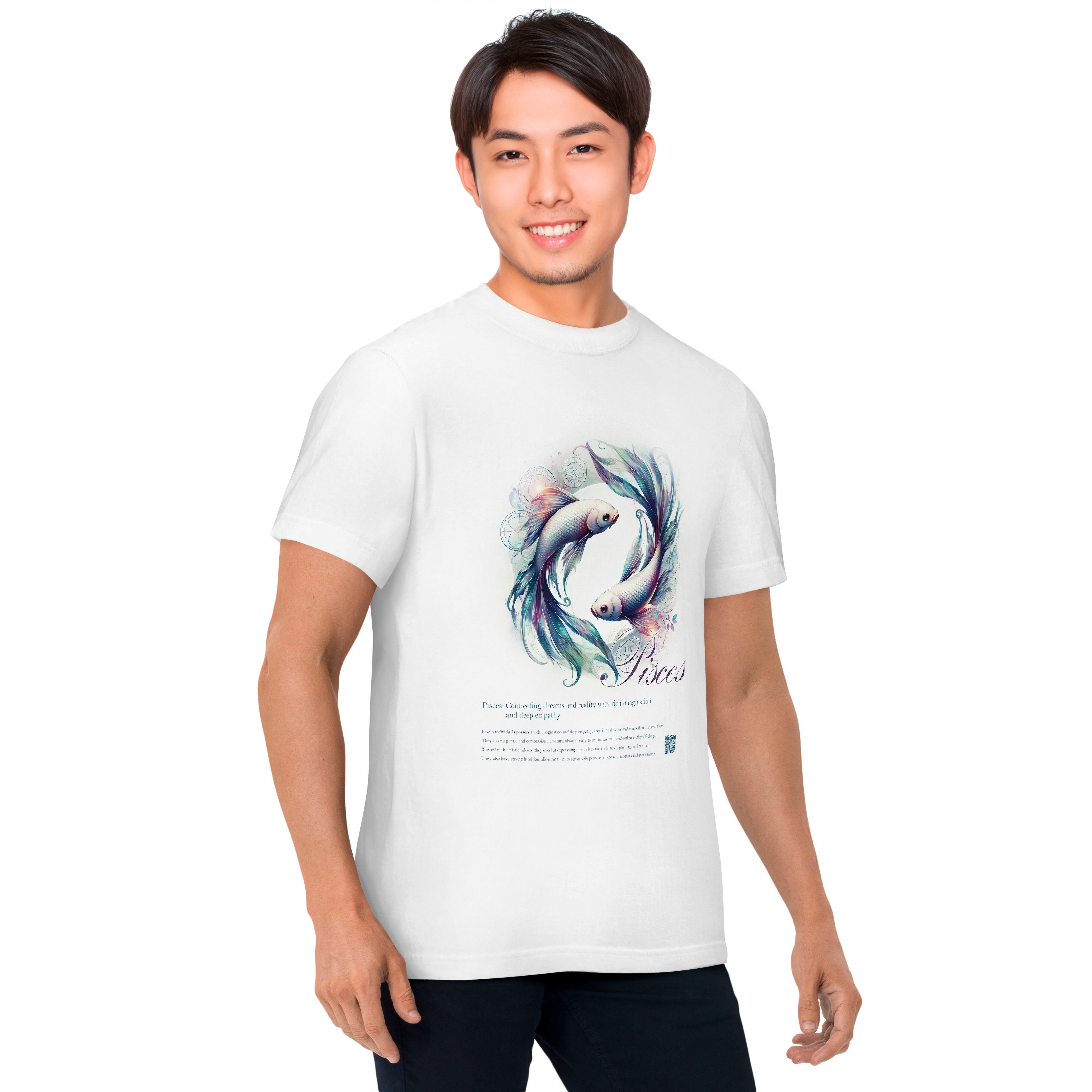 このTシャツは、感性豊かで直感力の強い魚座の方にぴったりの一枚です。魚座の持つ幻想的な世界観と、深い感受性をこのデザインで表現し、日常に柔らかさと美しさをプラスしてみてください。