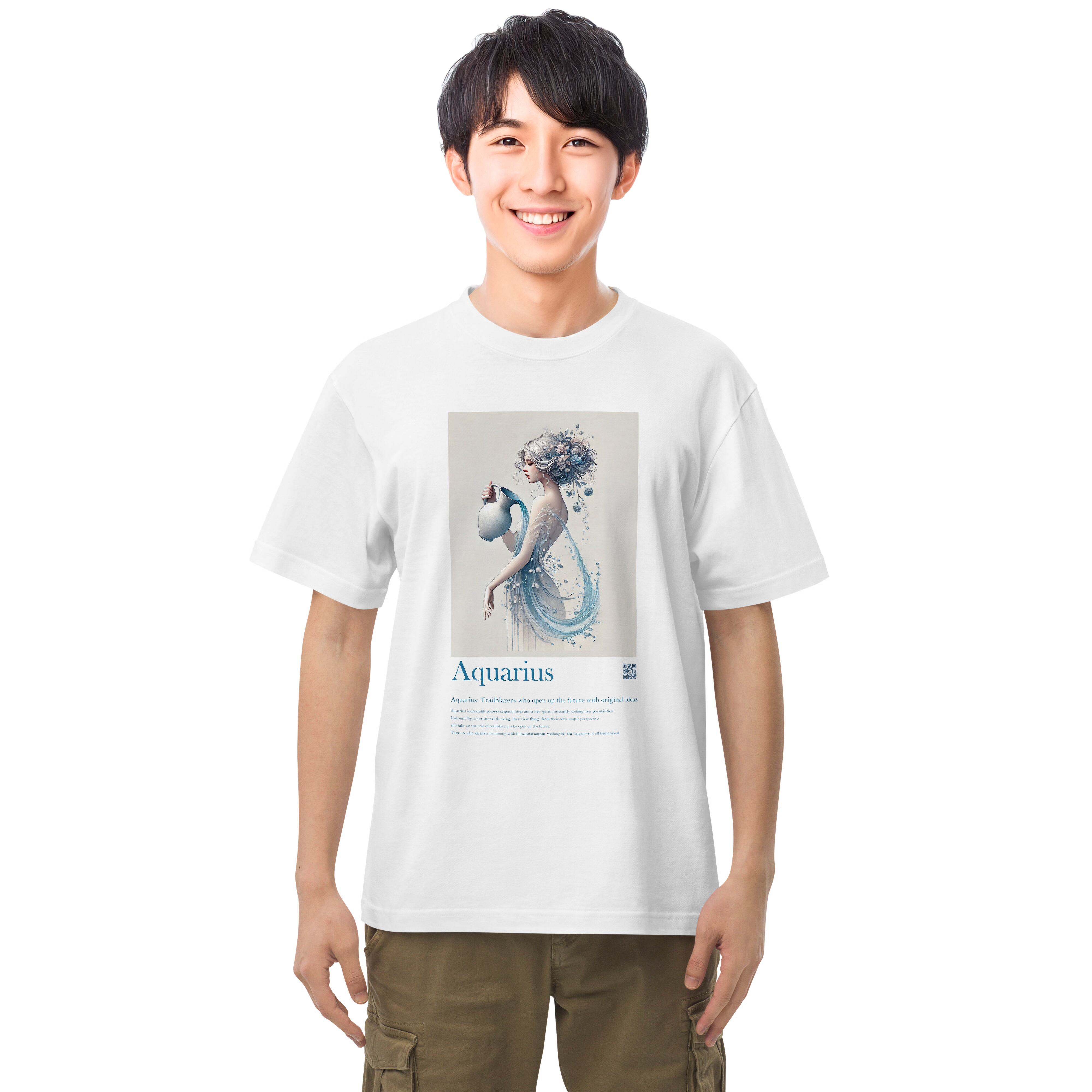 このTシャツは、自由で独立心が強く、自分らしさを大切にする水瓶座の方に最適です。このデザインを身に着けることで、あなたの持つ革新的なアイデアと自由な精神が一層引き立つでしょう。