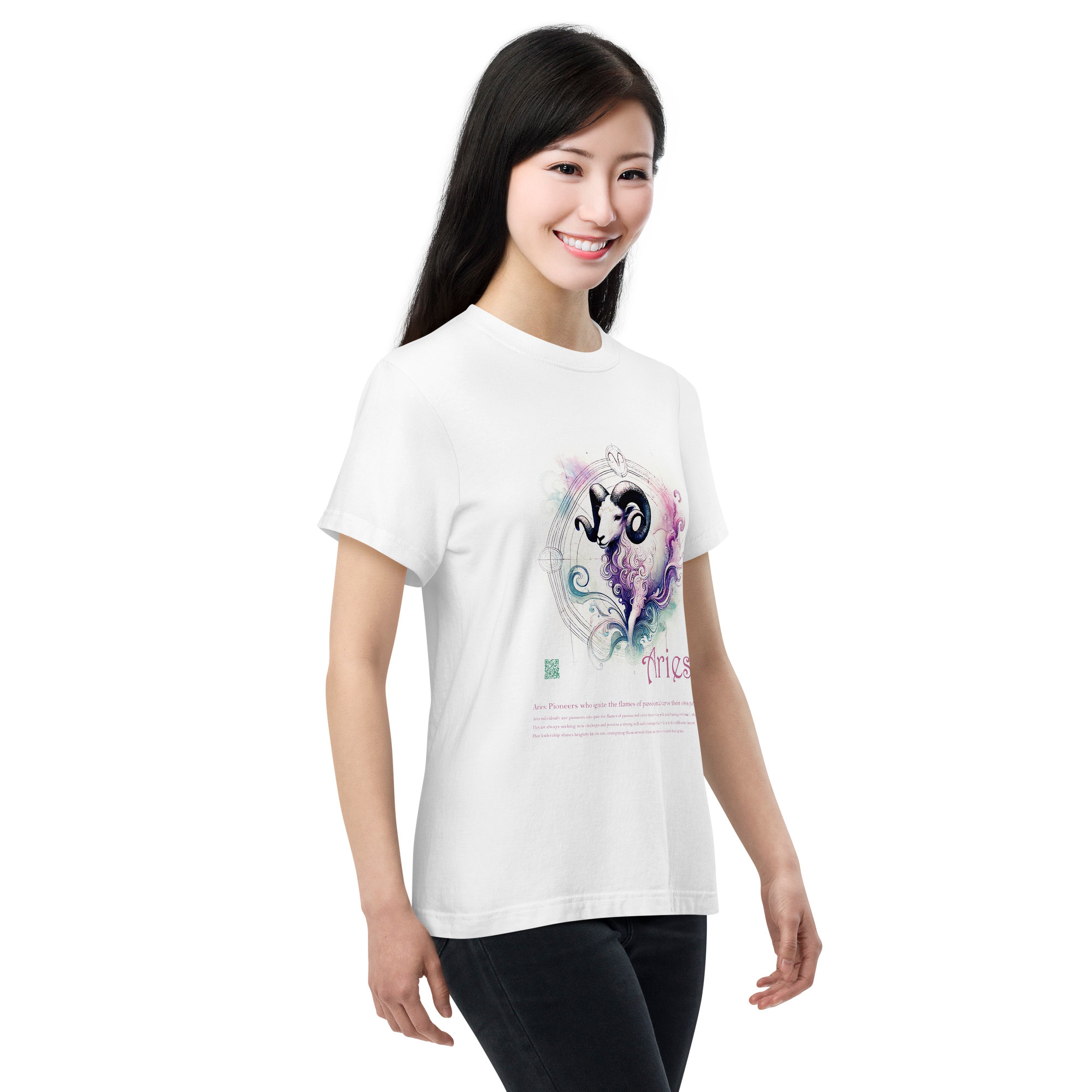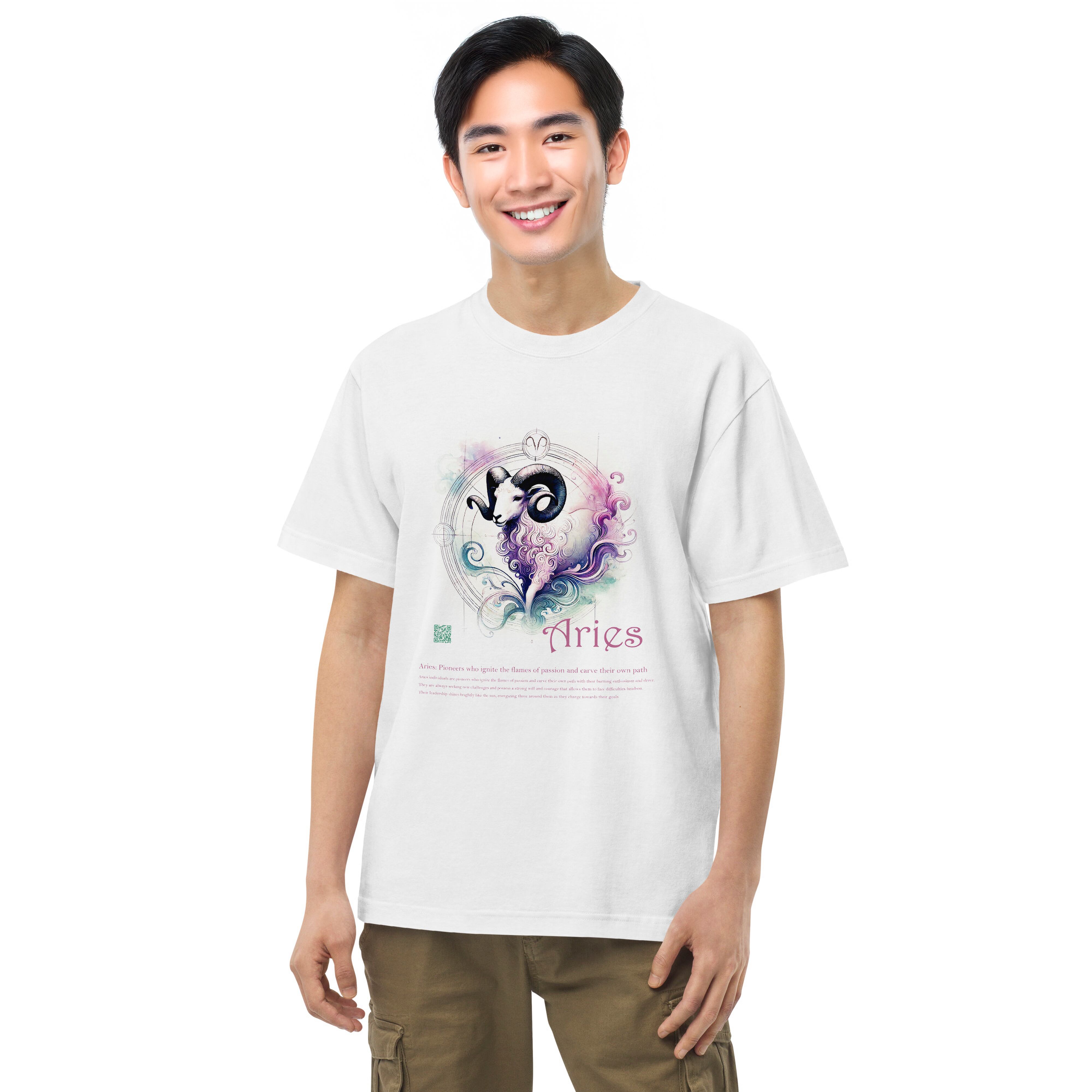 このTシャツのデザインは、情熱と冒険心に満ちた牡羊座のエネルギーをビジュアル化した特別な一枚です。雄羊の力強さと勇敢さを象徴するこのデザインは、牡羊座の積極的で決断力のある性質を完璧に表現しています。