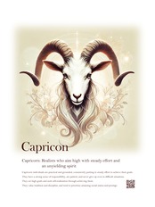 山羊座は、地のエレメントに属し、現実的でありながらも非常に野心的な性質を持つ星座です。このデザインにおいて、背景に描かれた繊細な植物模様が、山羊座の持つ自然とのつながりと穏やかさを表しています。さらに、淡い色彩の中に散りばめられた幾何学模様や天体のシンボルが、山羊座の計画性と目標達成への戦略的な姿勢を強調しています。