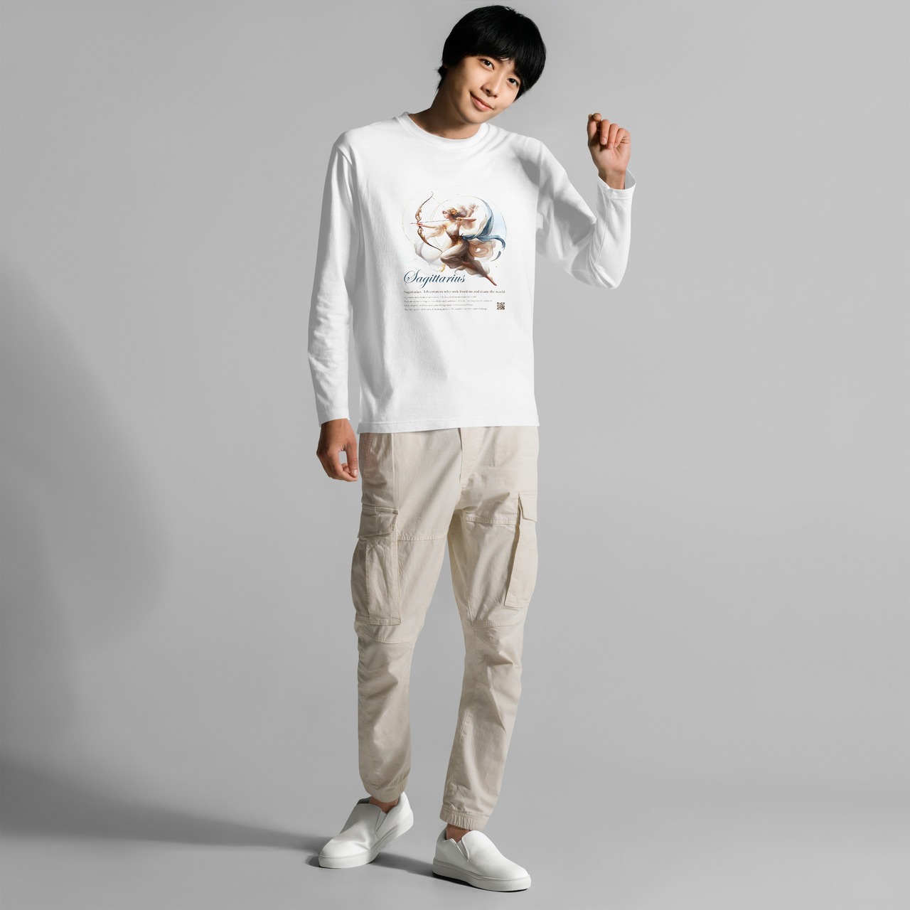 このTシャツは、自由を愛し、未知の世界を探求し続ける射手座の方にぴったりの一枚です。あなたの内なる冒険心と理想を、この美しいデザインで表現してみてください。