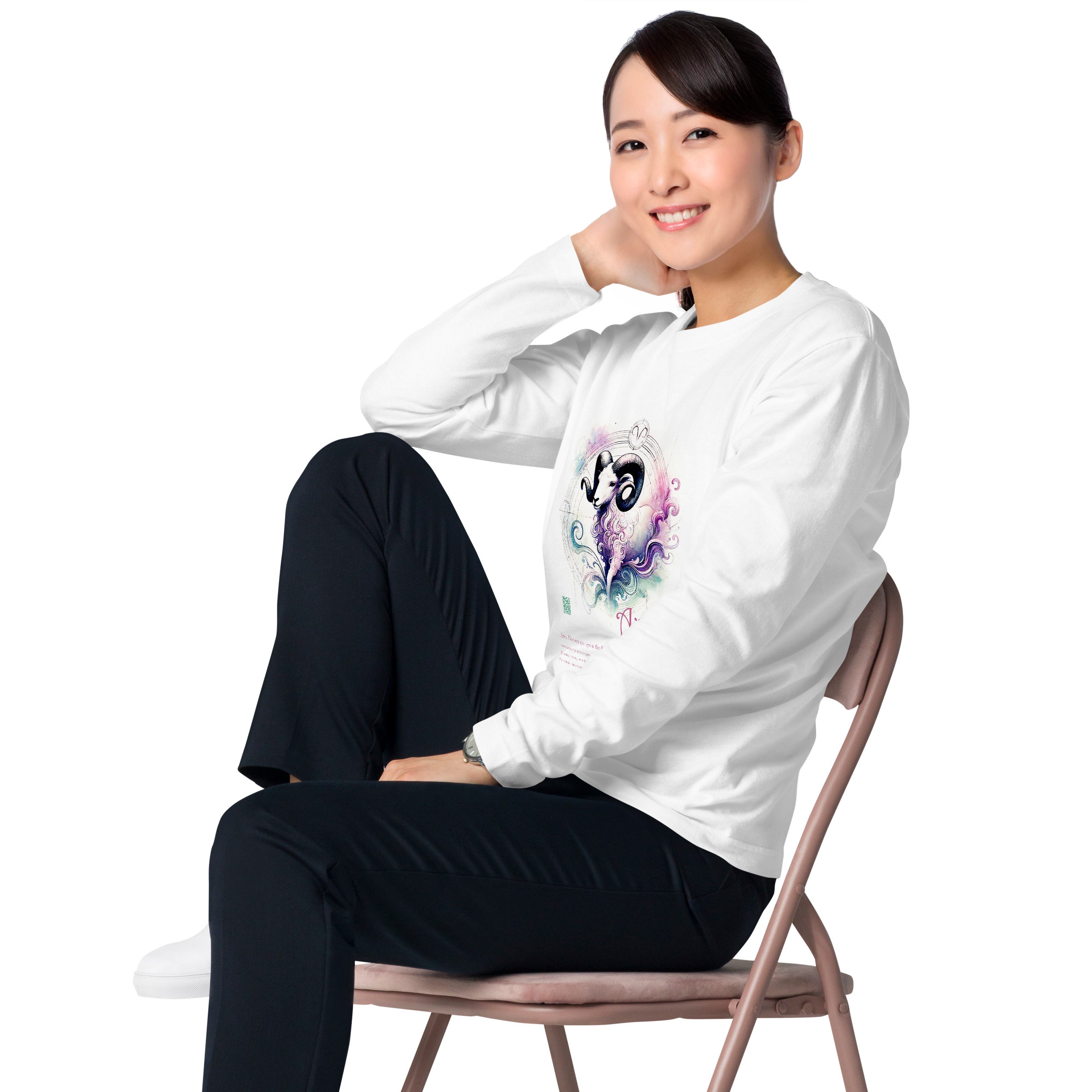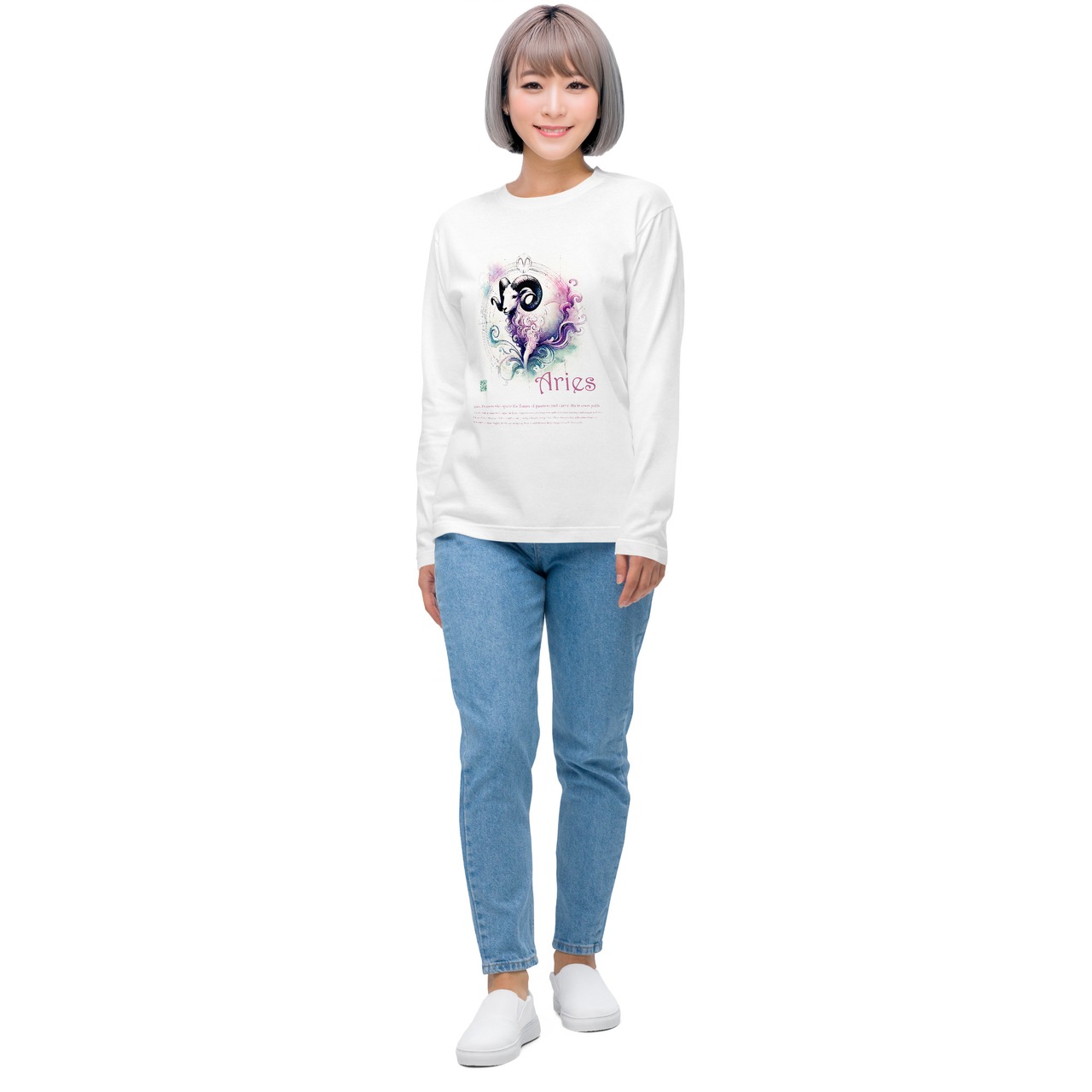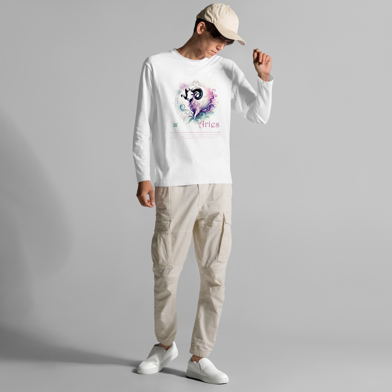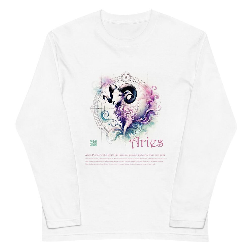 このTシャツのデザインは、情熱と冒険心に満ちた牡羊座のエネルギーをビジュアル化した特別な一枚です。雄羊の力強さと勇敢さを象徴するこのデザインは、牡羊座の積極的で決断力のある性質を完璧に表現しています。